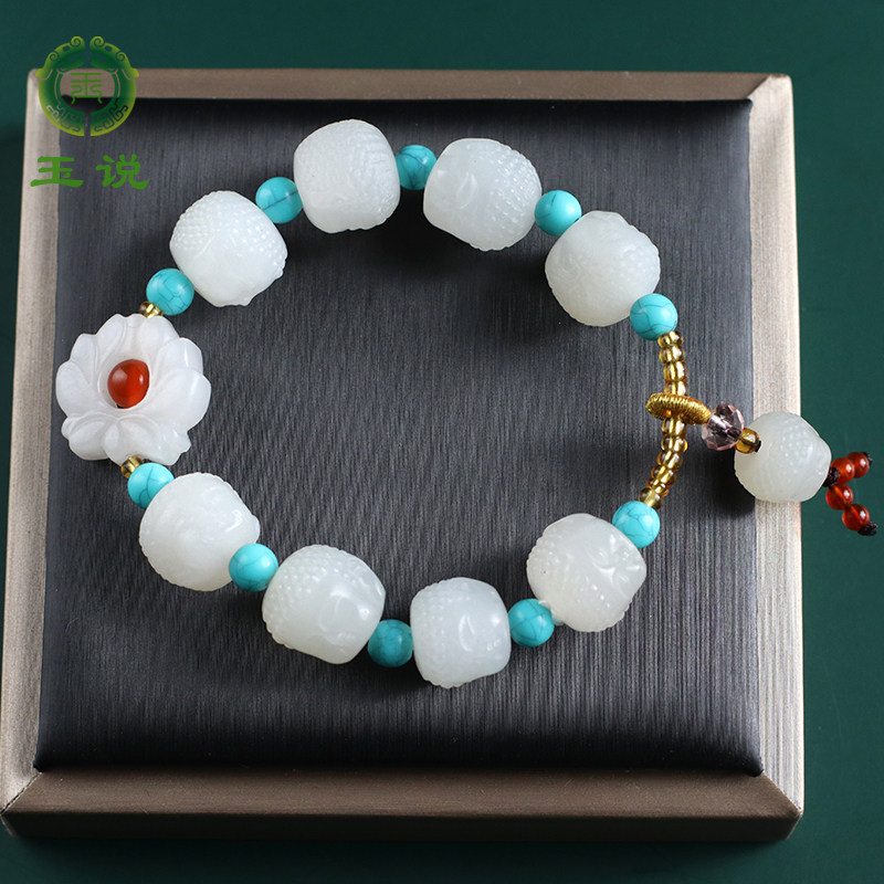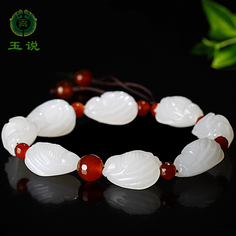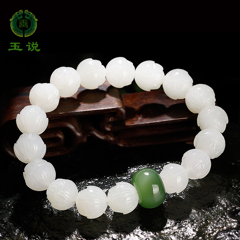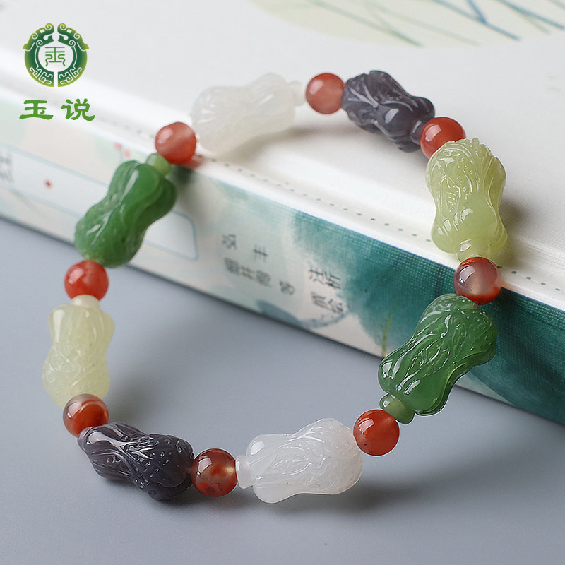 玉说和田玉白菜手串男女款白玉碧玉糖玉多宝立体玉石手链男附证书