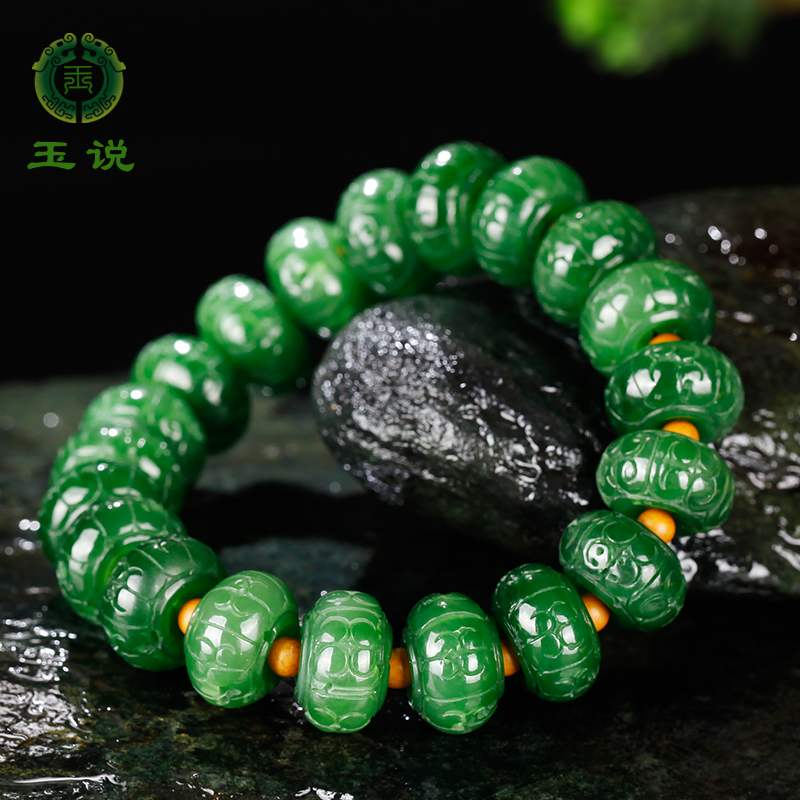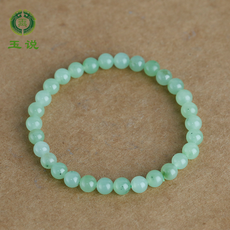 玉说和田玉碧玉手串女款玉石手链苹果绿圆珠富贵玉手饰附证书DY