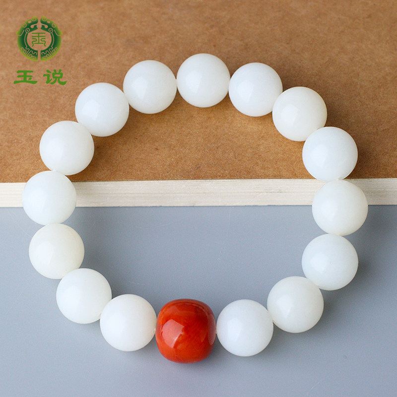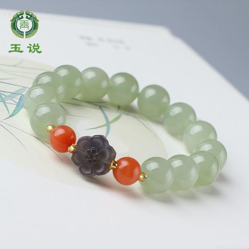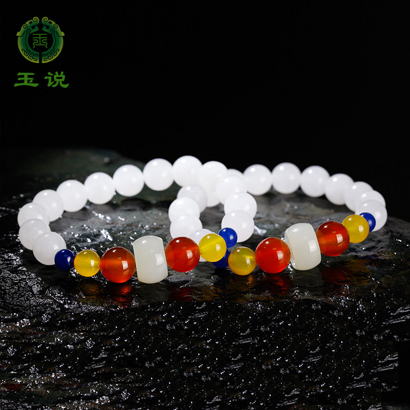 玉说和田玉圆珠手串男女款玉石手链南红白玉石富贵手饰附证书LJ