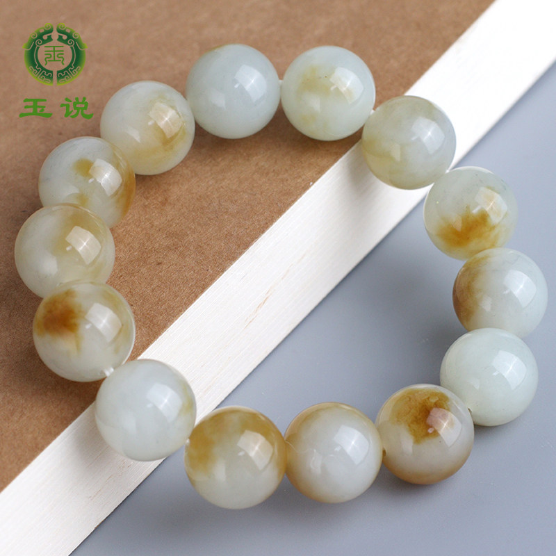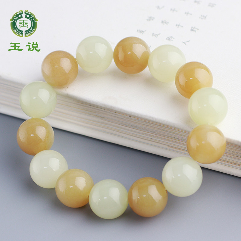 玉说和田玉黄玉老型珠手串女款玉石单珠9mm*10mm共20颗手链附证书