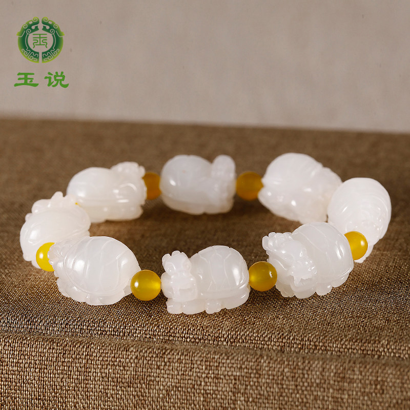 玉说和田玉羊脂白玉手串男款立体龙头手链男士玉石龙行天下玉手串