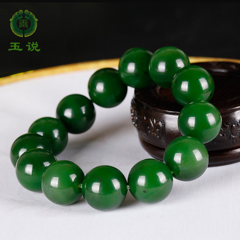 玉说和田玉碧玉手串男女款菠菜绿玉石圆珠手链约13颗单珠16mm