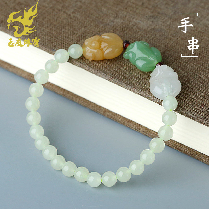 玉友和田玉三色猴子手链女款玉石玉器不听不看不说三不猴手串孤品