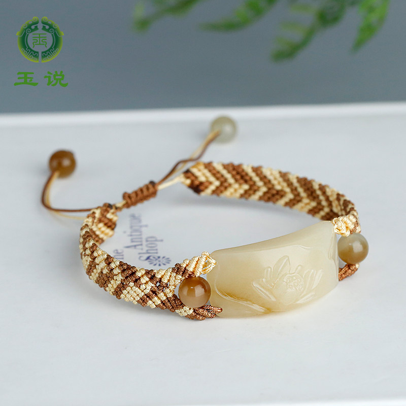 玉说和田玉羊脂白玉手链女款玉石如意手串圆满富贵手编手饰附证书