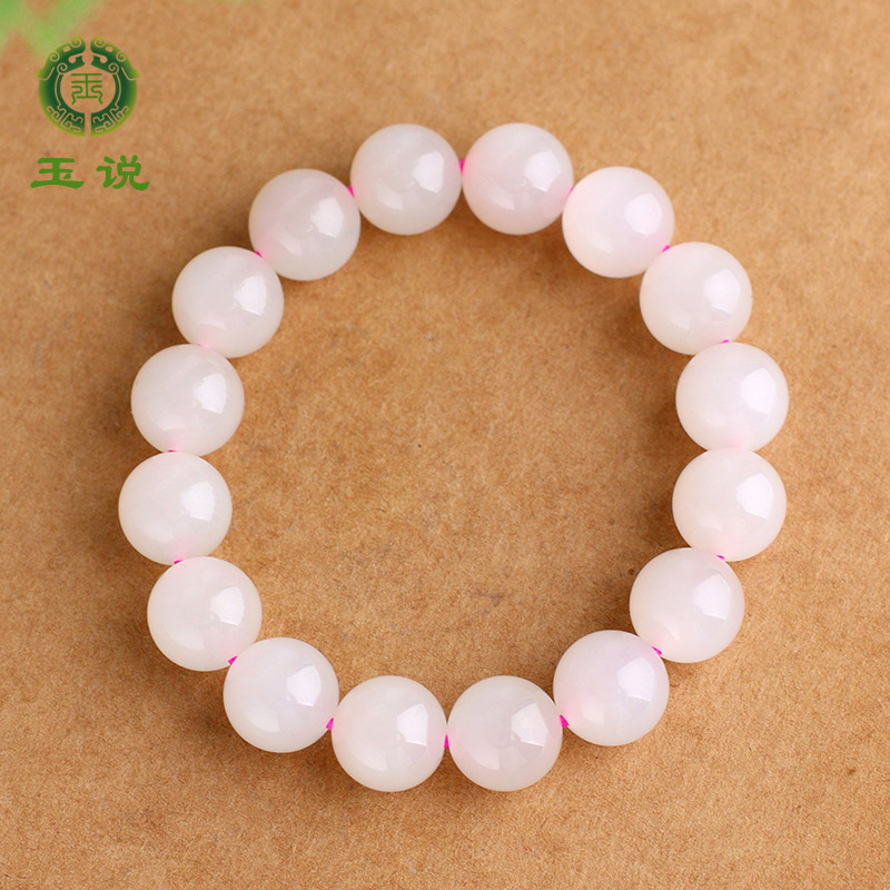 玉说和田玉藕粉手串男款玉石手链圆珠玉器圆满手饰附证书珠连富贵
