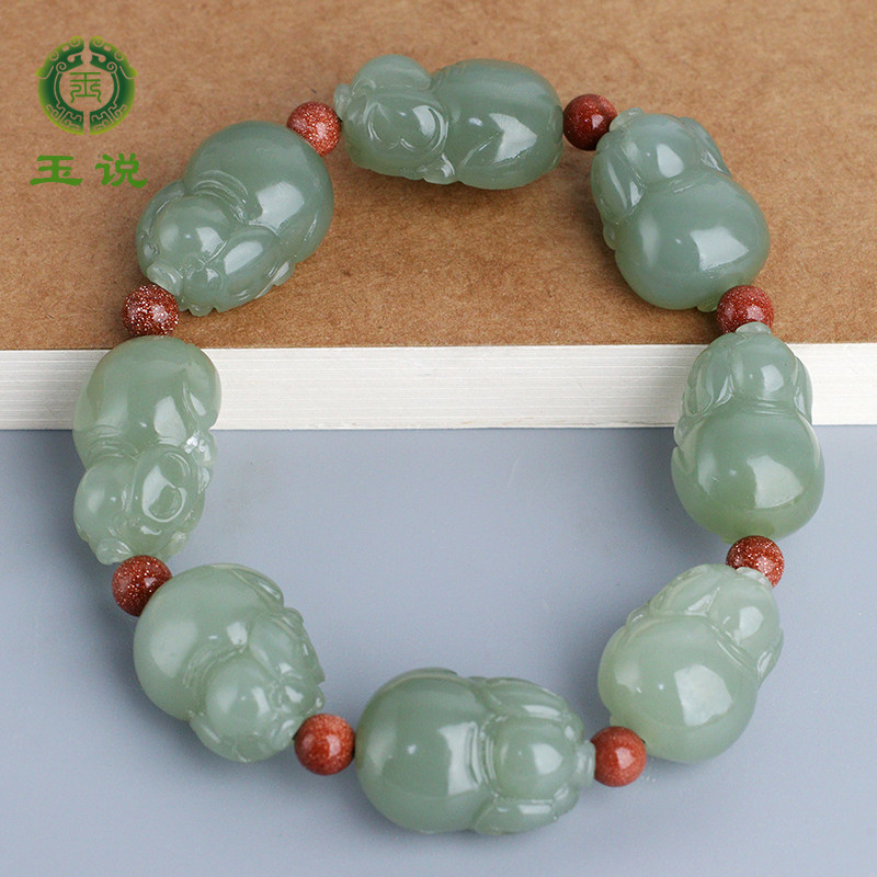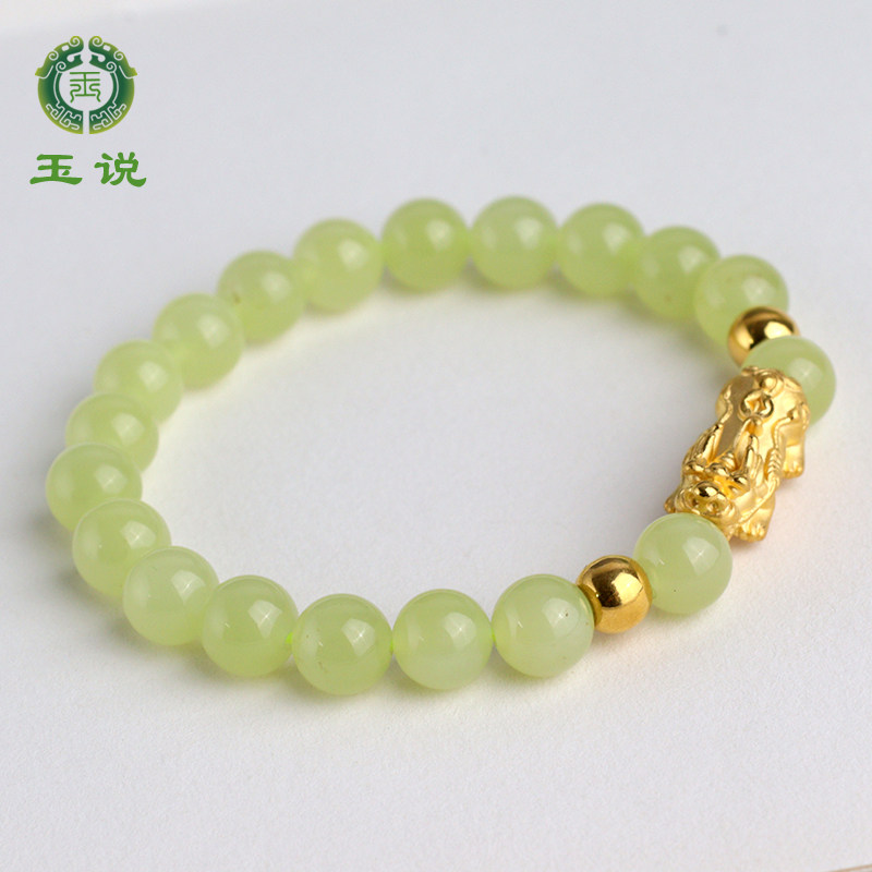 玉说和田玉手链女碧玉搭配足金珠玉石手链手串饰品绿色玉石手串