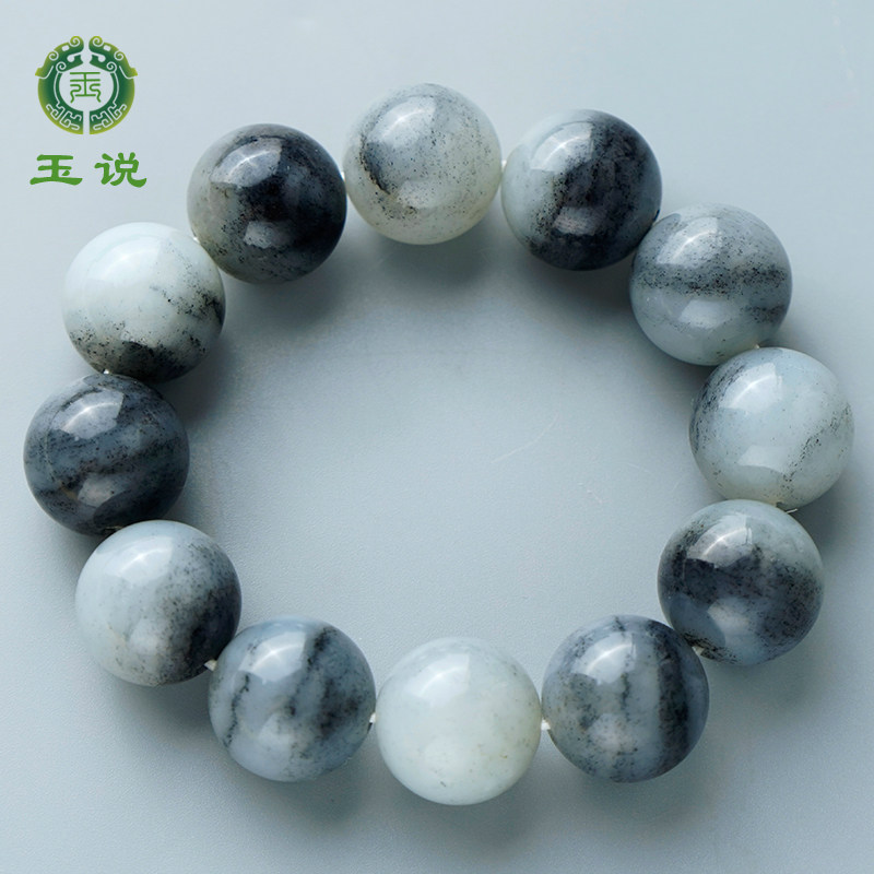 玉说和田玉青花手链男款玉石手串圆珠意境玉手饰附证书直径约18mm