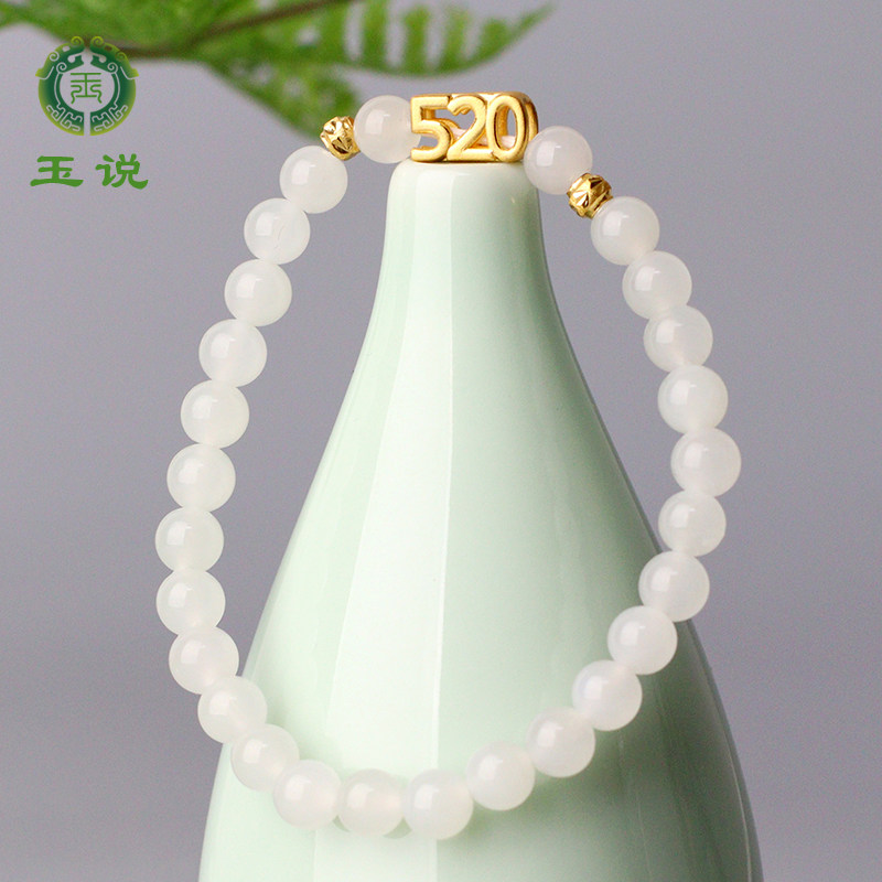 玉说和田玉羊脂白玉手串男女款玉石送女友礼物圆珠单圈手链附证书