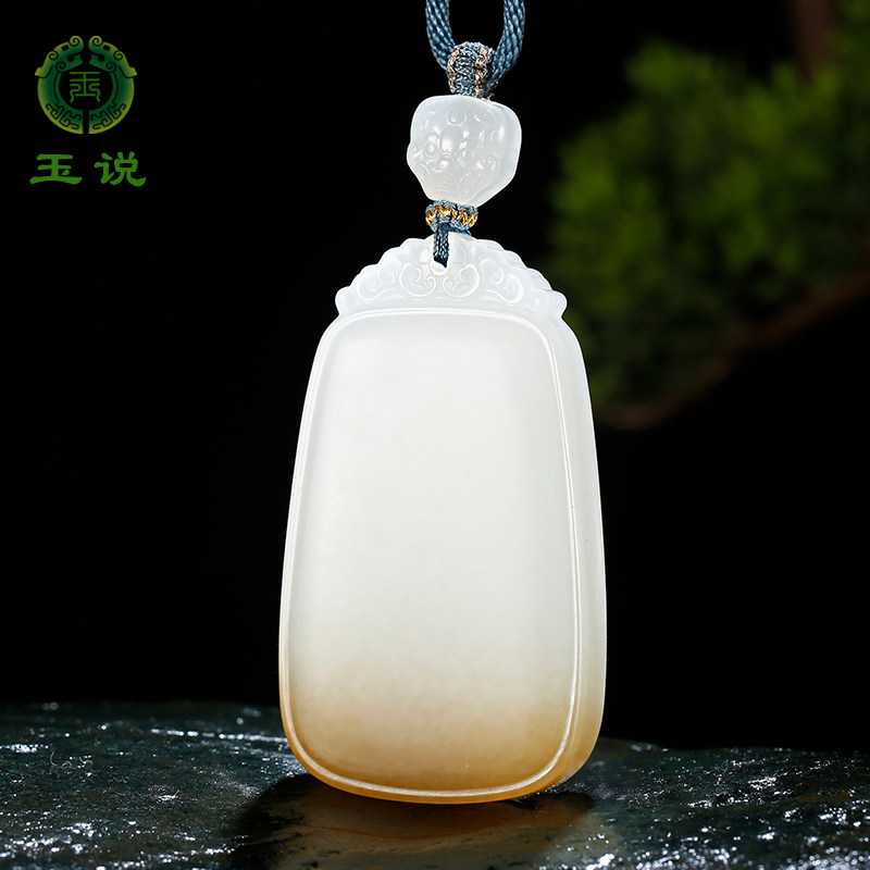 玉说和田玉平安牌吊坠男女款玉坠糖羊脂白玉无事牌玉佩玉石挂件GX
