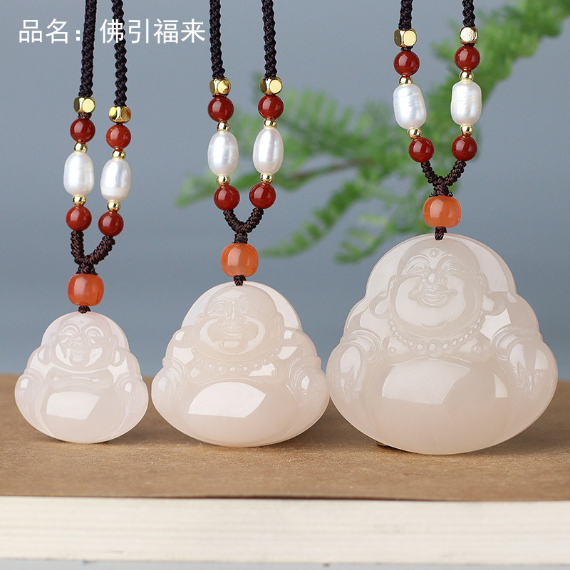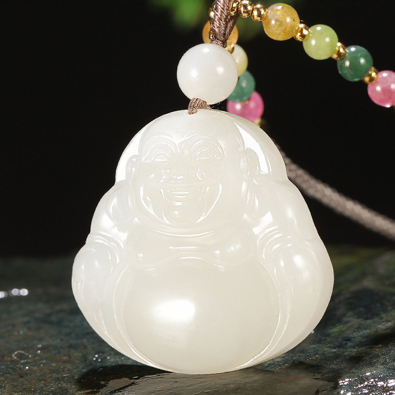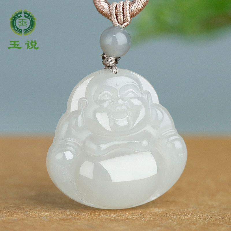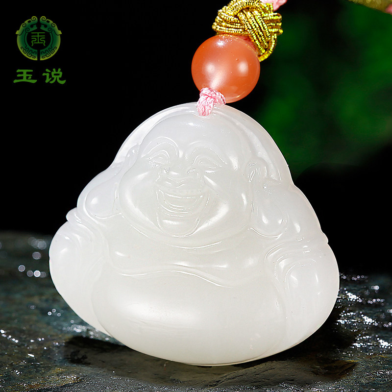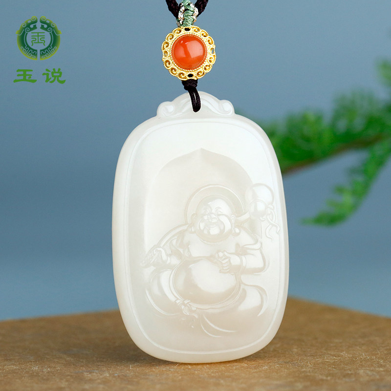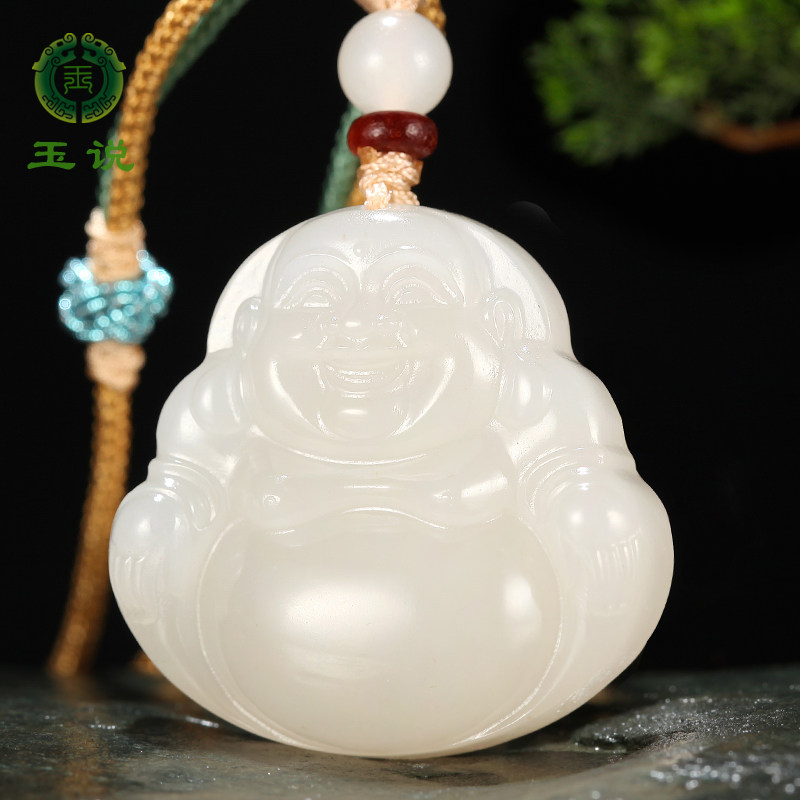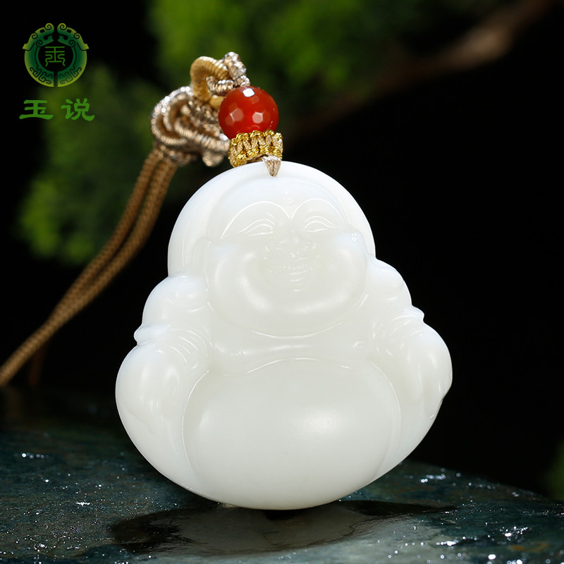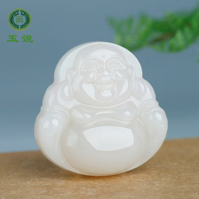 玉说和田玉佛吊坠女款白玉弥勒佛玉坠玉石项链大肚笑佛公玉佩挂件