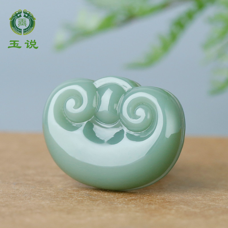 玉说和田玉碧玉如意吊坠男女款玉坠鸭蛋青玉佩玉石挂件附证书zzk