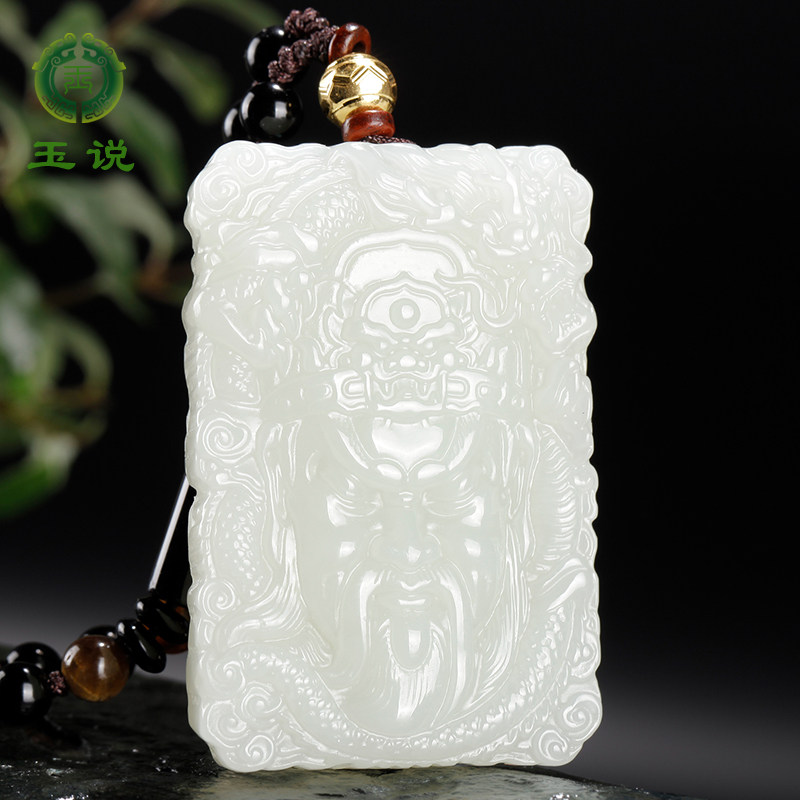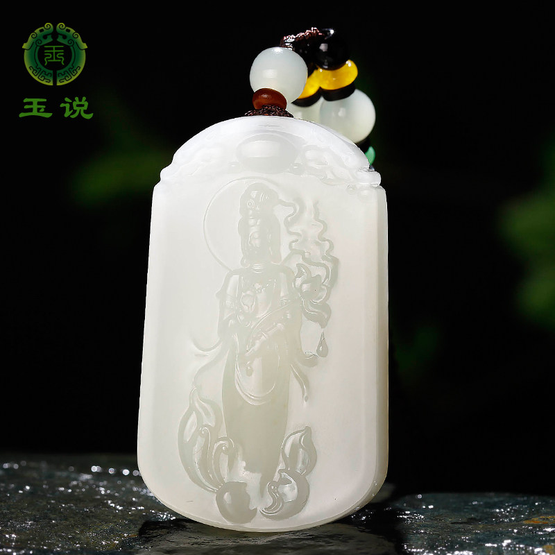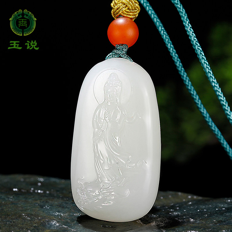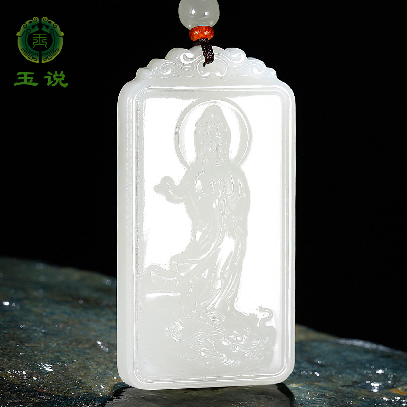玉说和田玉白玉观音吊坠男款玉牌站龙观音菩萨玉佩玉石挂件玉牌子