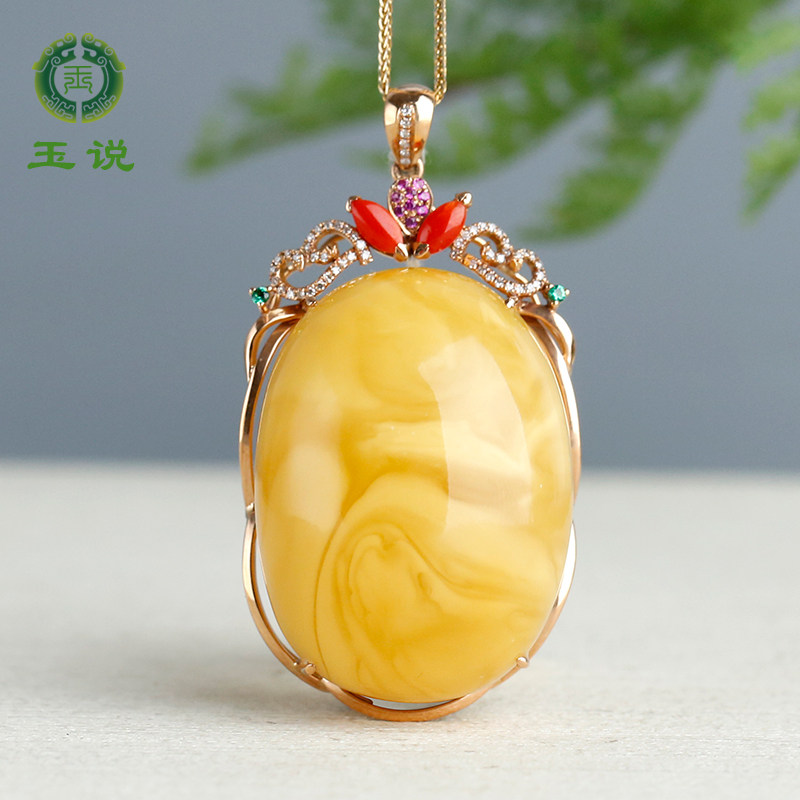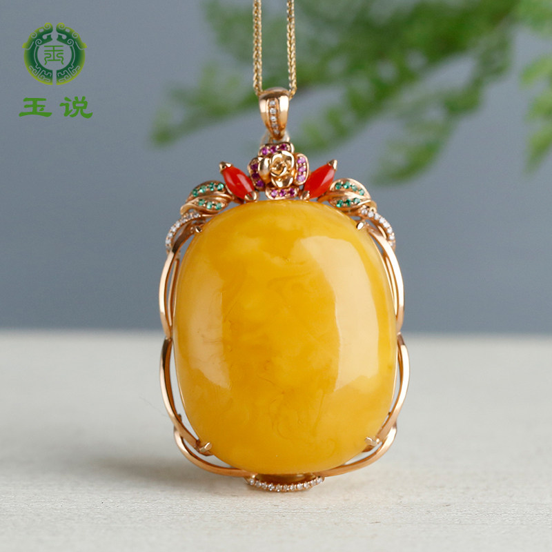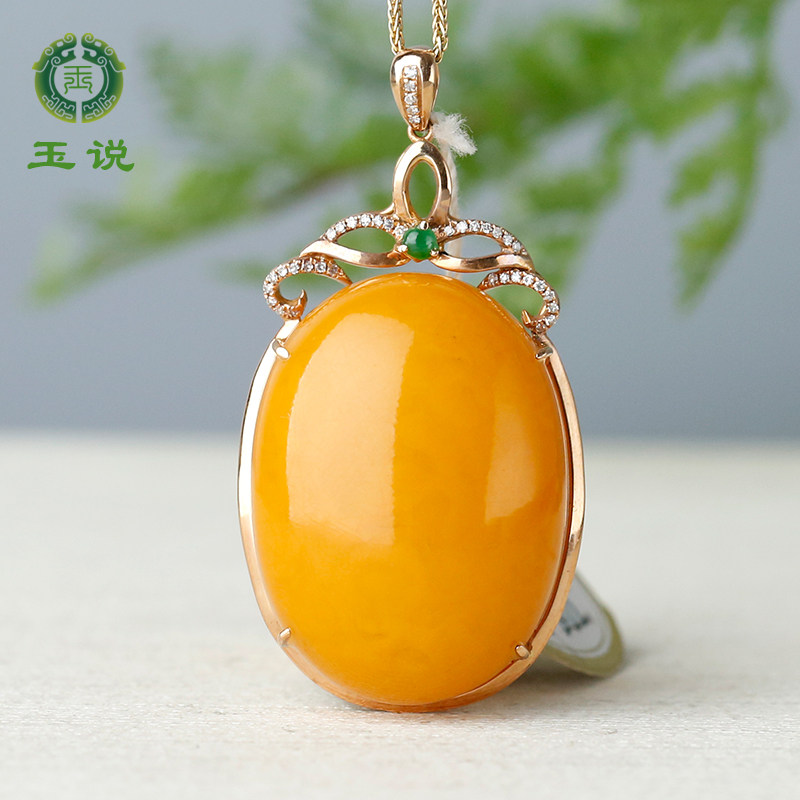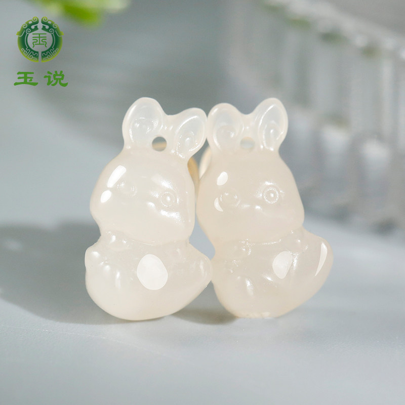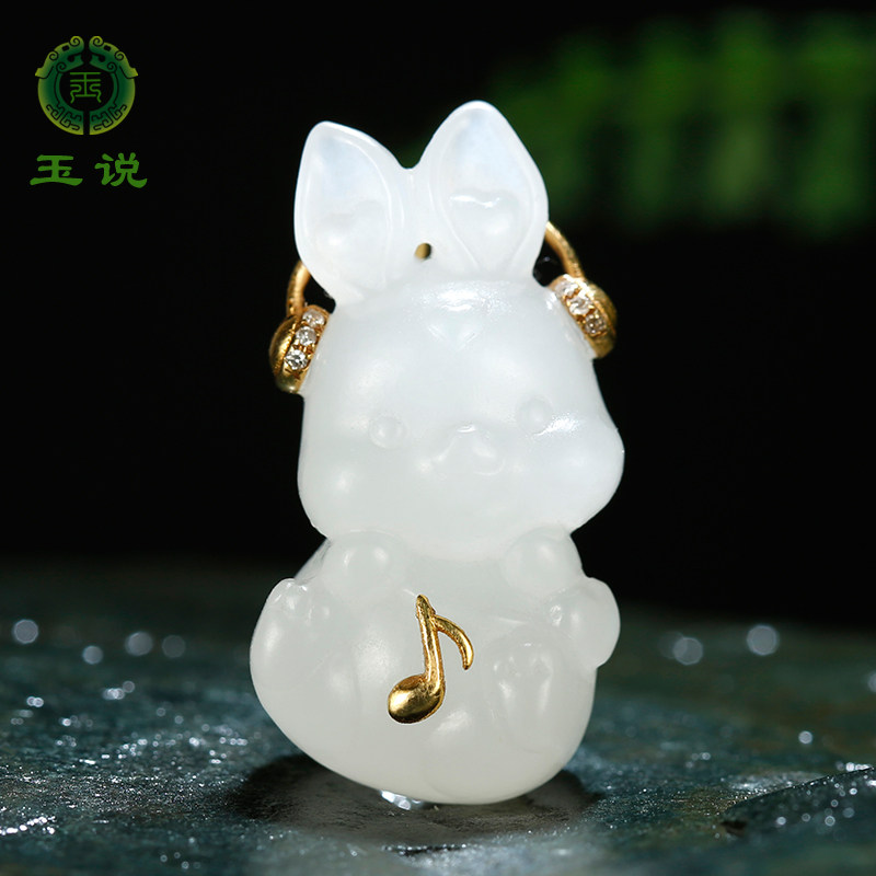 玉说和田玉18K金镶生肖兔吊坠女款玉坠立体兔玉佩玉石挂件不含链