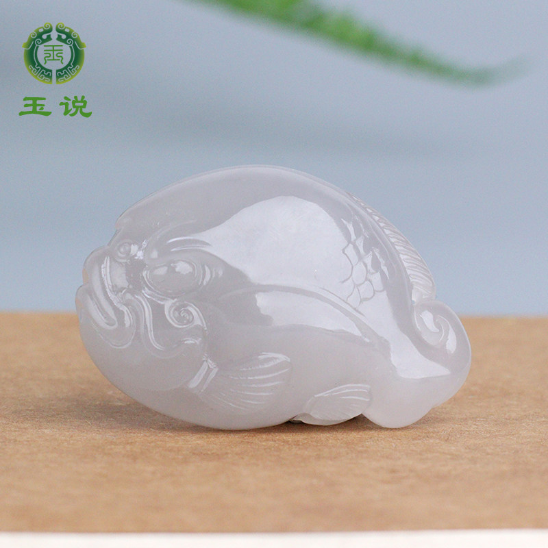 玉说和田玉青花小鱼吊坠男女款玉坠玉佩立体鱼玉石挂件附证书DY