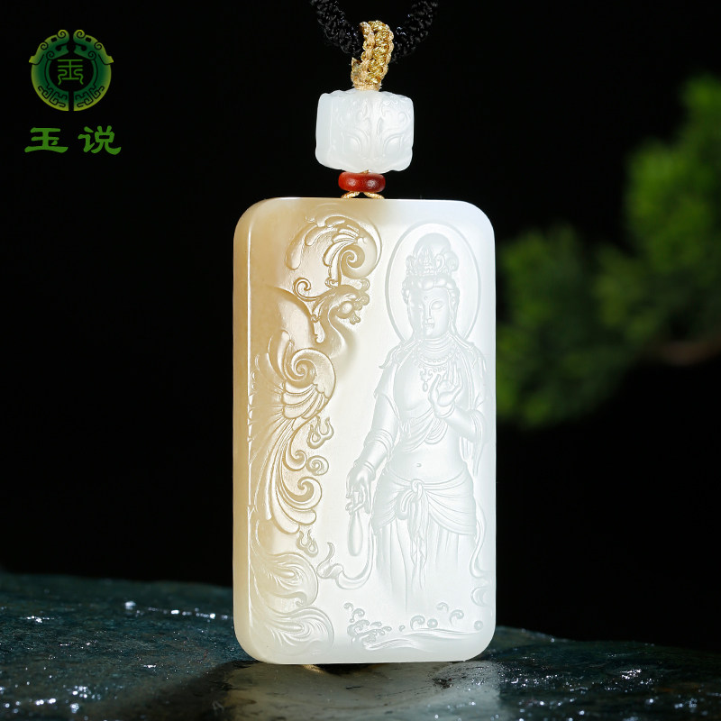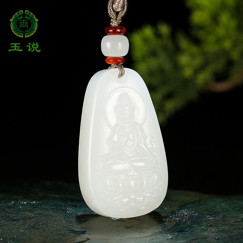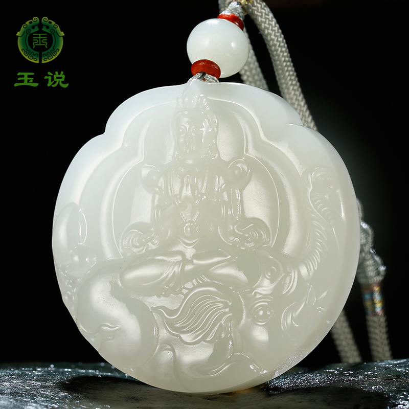 玉说和田玉羊脂白玉观音吊坠男款普贤玉坠玉佩骑大象菩萨玉石挂件