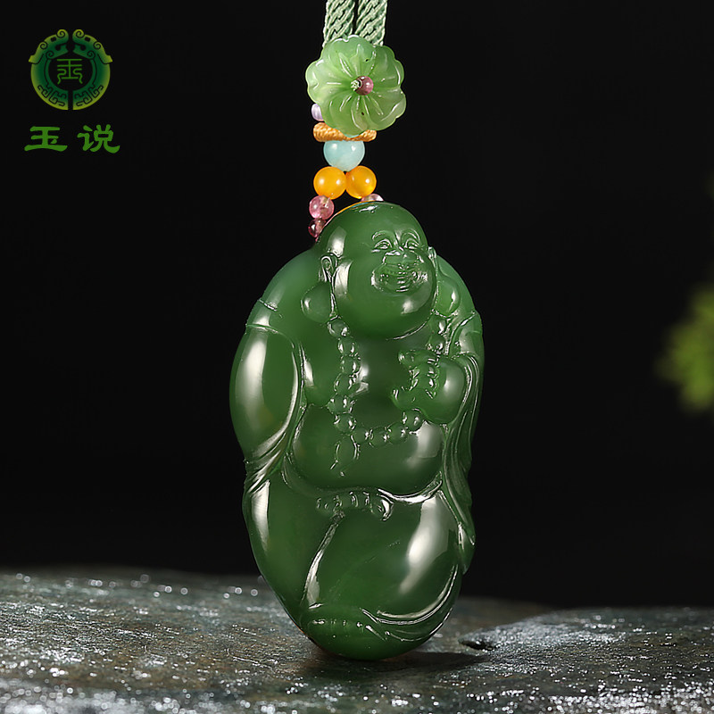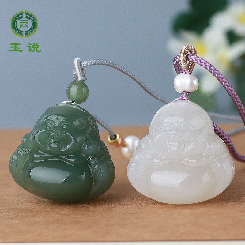 玉说和田玉佛公吊坠女款玉坠冰绿碧玉大肚弥勒项链佛玉佩玉石挂件