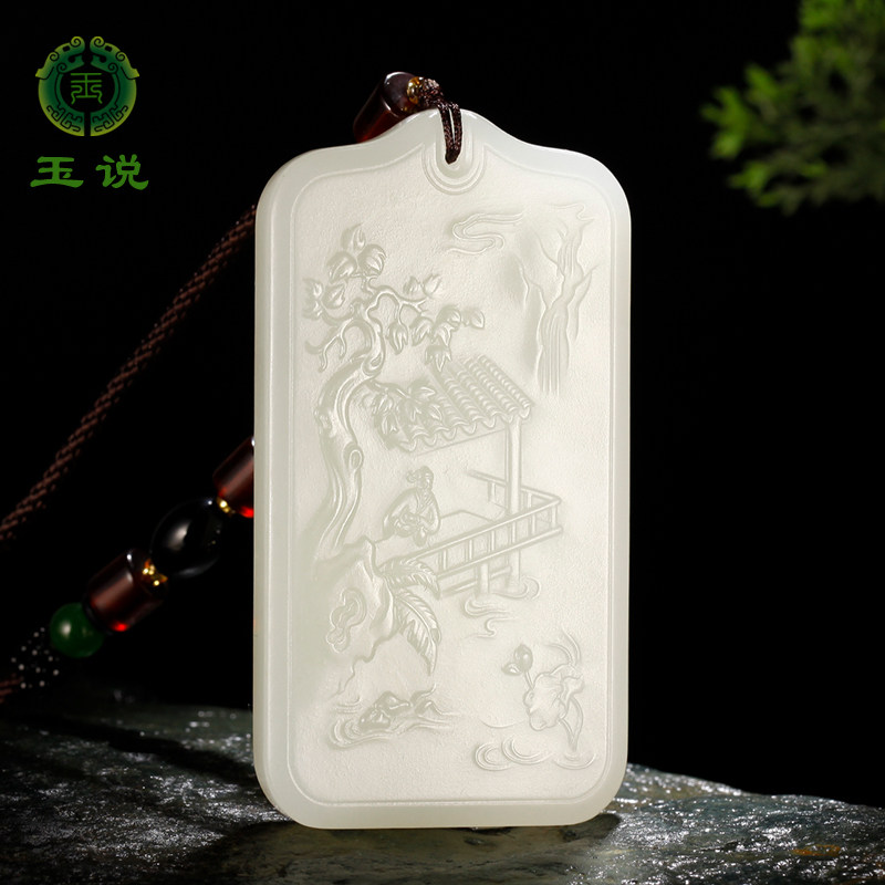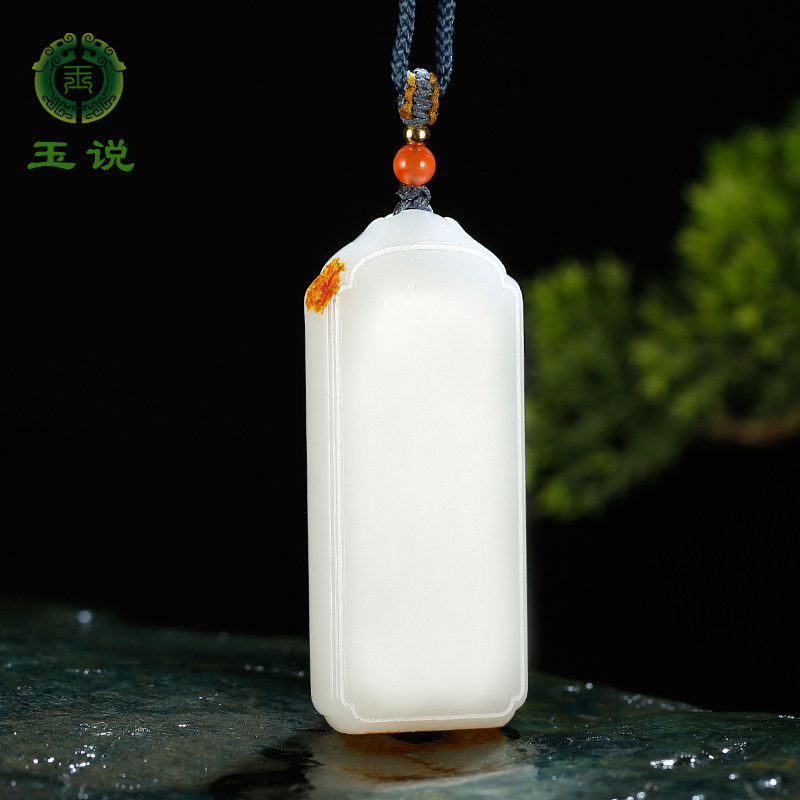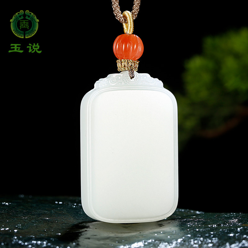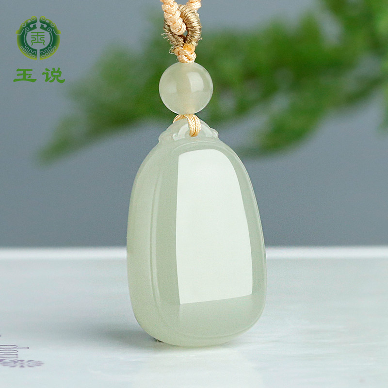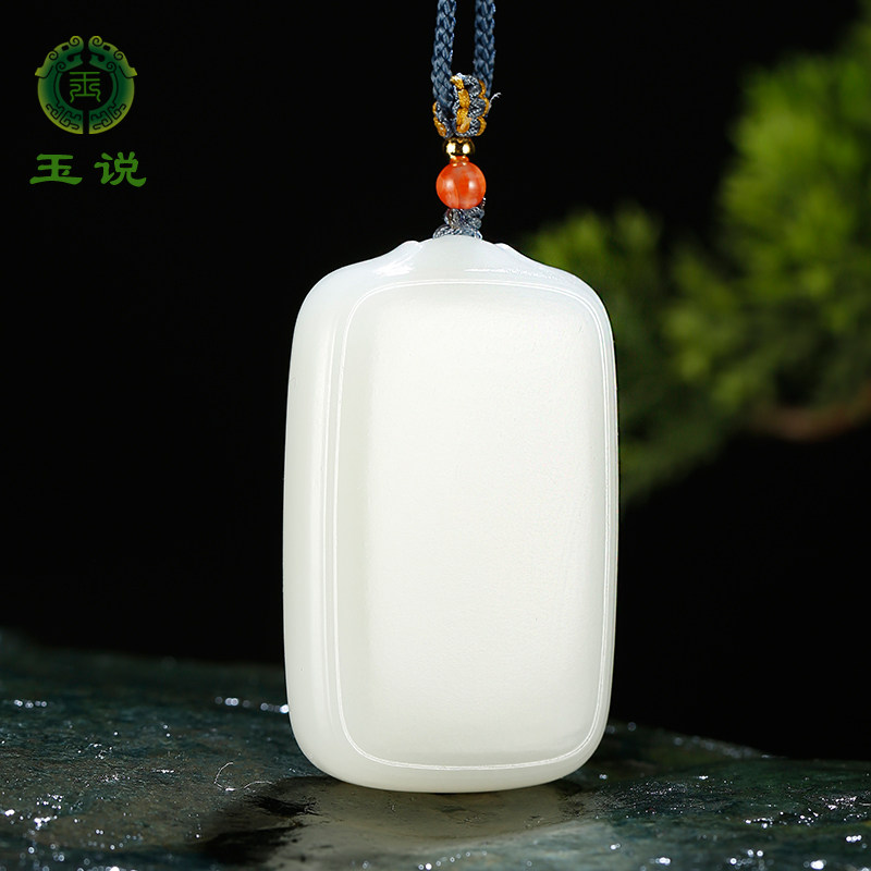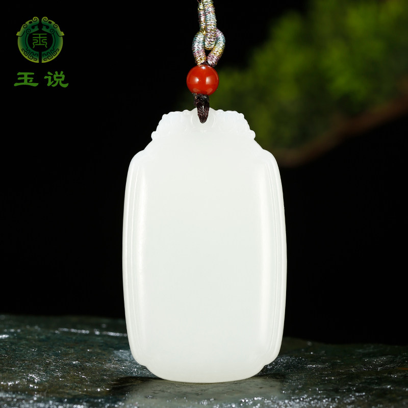 玉说和田玉平安牌吊坠男款玉坠羊脂玉无事牌玉佩玉石挂件附证书LJ