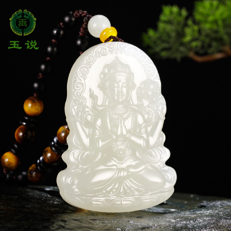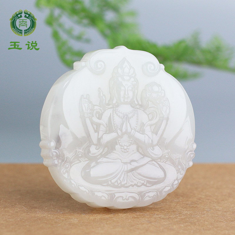 和田玉羊脂白玉观音吊坠男款白玉四臂观音千手观音玉牌玉佩玉挂件