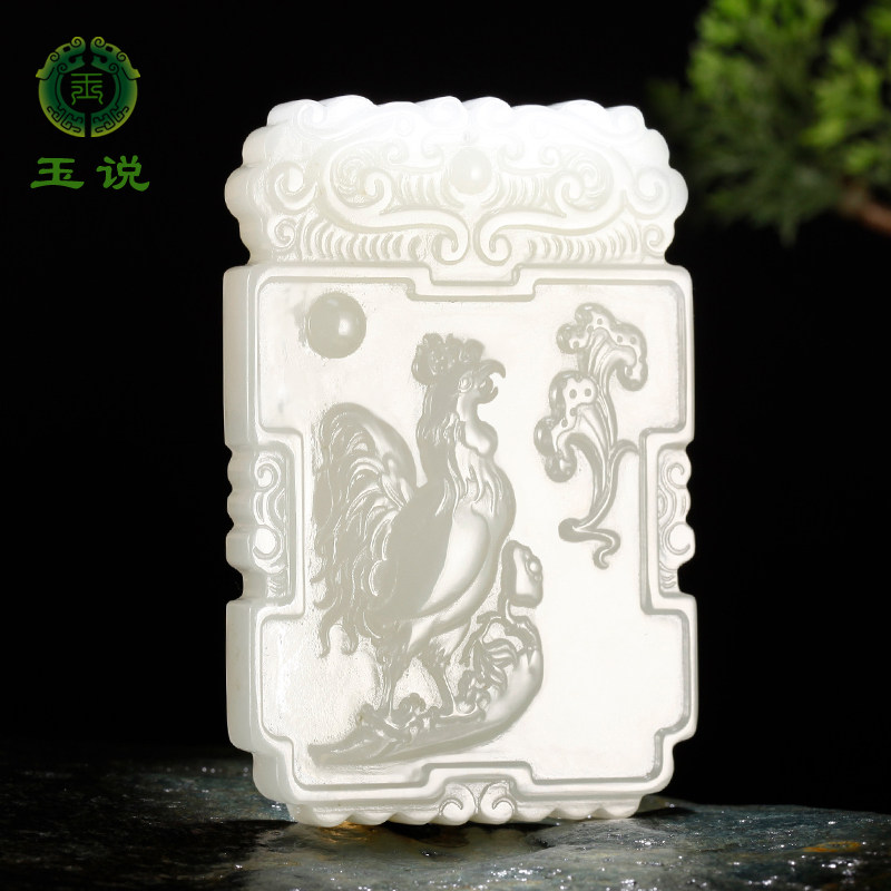 玉说和田玉白玉生肖鸡吊坠男款玉坠玉佩官上加官大玉牌子玉石挂件