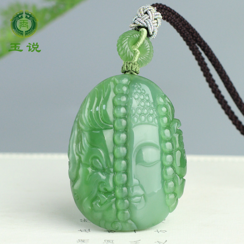 玉说和田玉碧玉佛魔吊坠猫眼玉坠玉佩阳绿玉石挂件项链一念之间