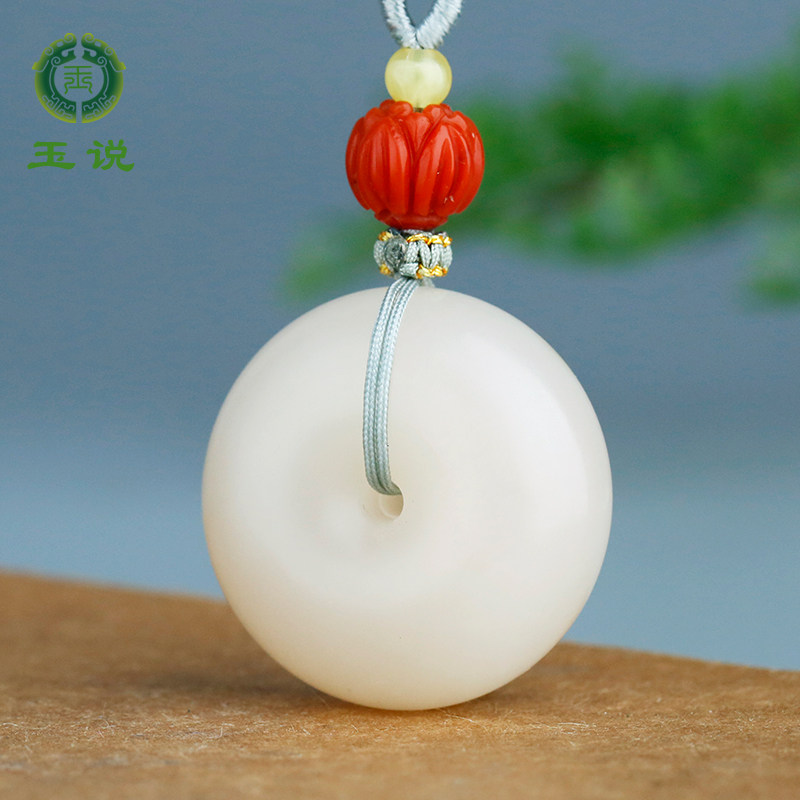 玉说和田玉平安扣吊坠男女款玉坠羊脂白玉扣玉佩玉石挂件附证书