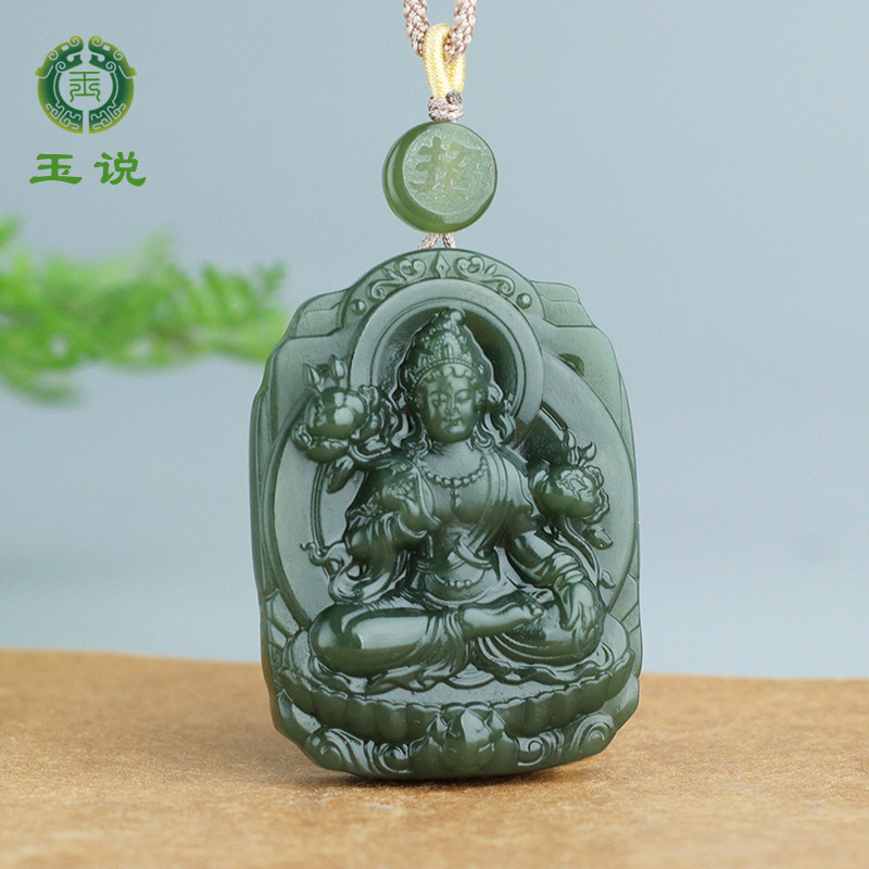 玉说和田玉碧玉千手观音吊坠男款菩萨玉牌玉佩玉坠天然绿色玉挂件