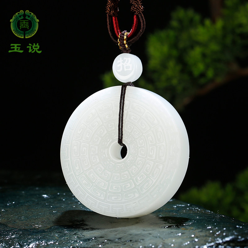 玉说和田玉平安扣吊坠男款玉坠仿古回纹玉璧玉佩玉石挂件附证书