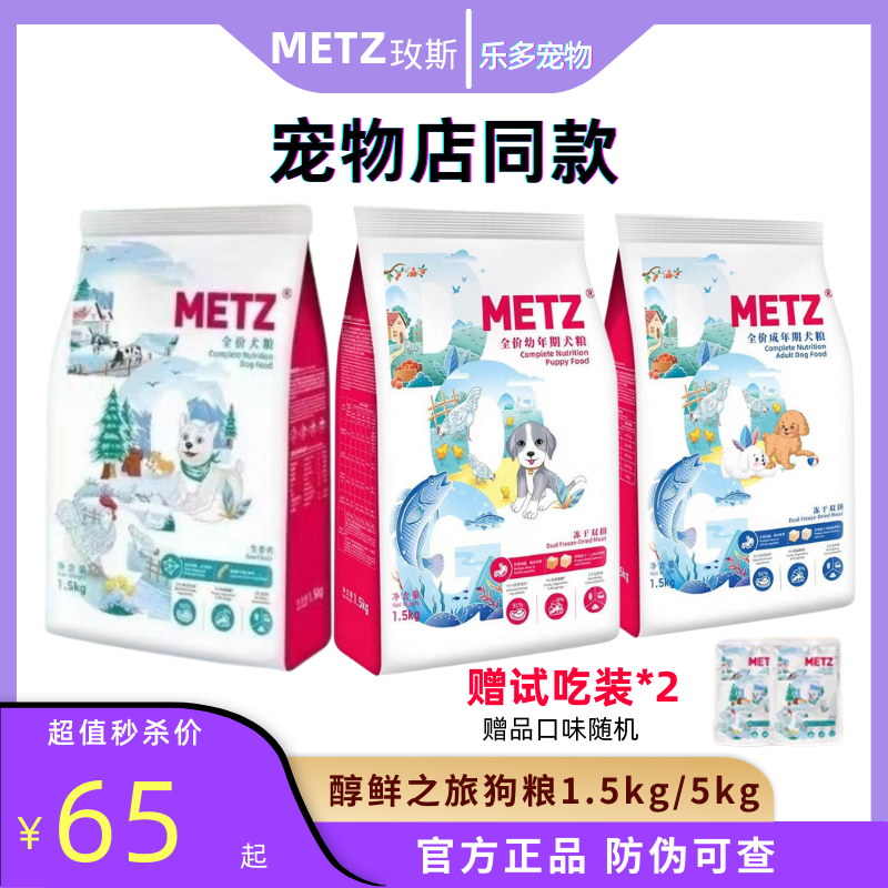 METZ/玫斯醇鲜之旅成犬幼犬泰迪比熊全价冻干生骨肉狗粮1.5kg
