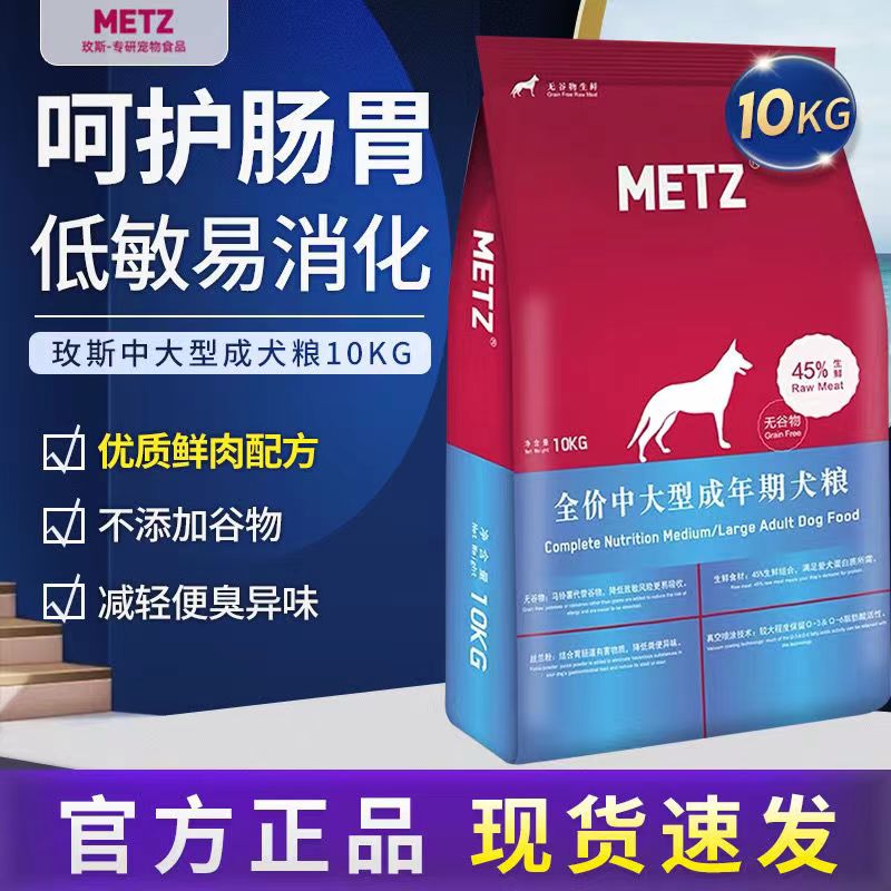 METZ/玫斯狗粮中大型犬成犬粮10kg萨摩耶拉布拉多通用型无谷狗粮