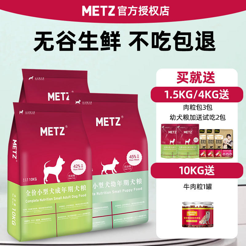 METZ/玫斯无谷物生鲜全价小型犬通用幼犬粮10kg贵宾泰迪狗粮20斤