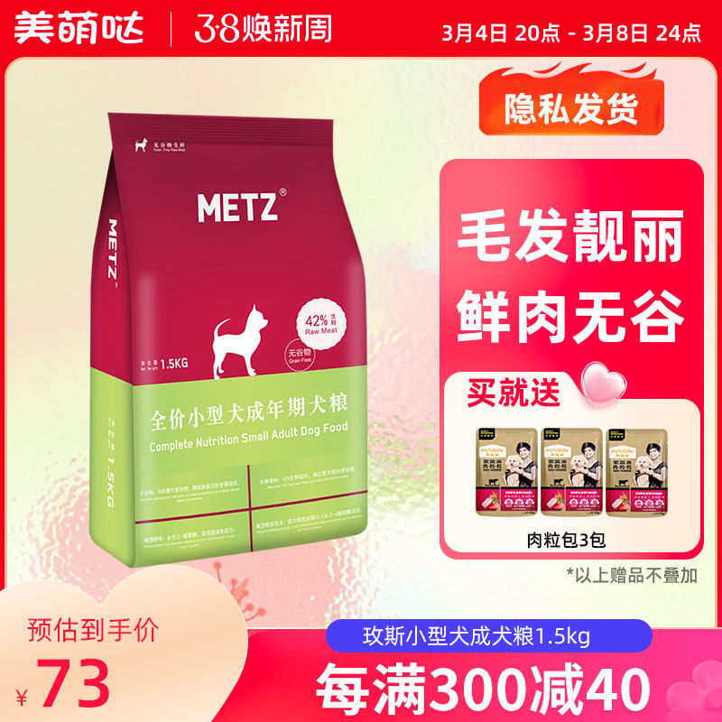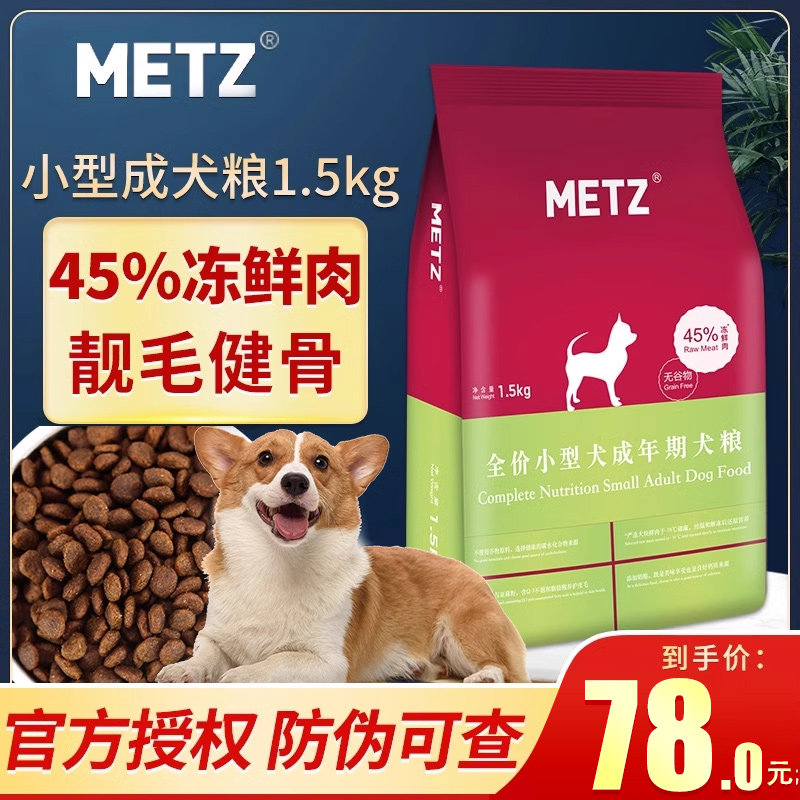 METZ/玫斯狗粮无谷物生鲜全价小型犬成年犬粮1.5kg泰迪通用型狗粮