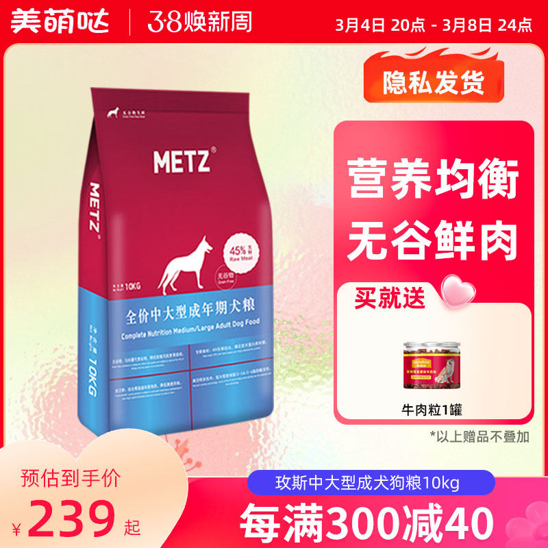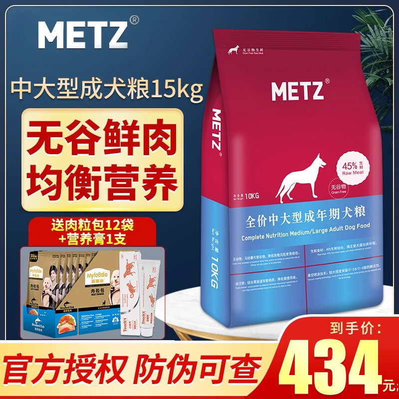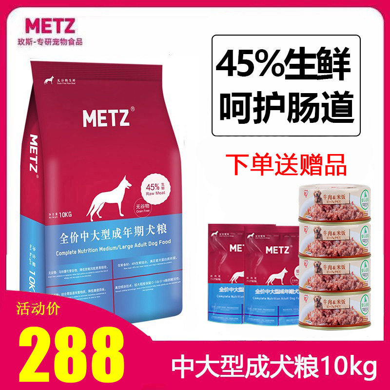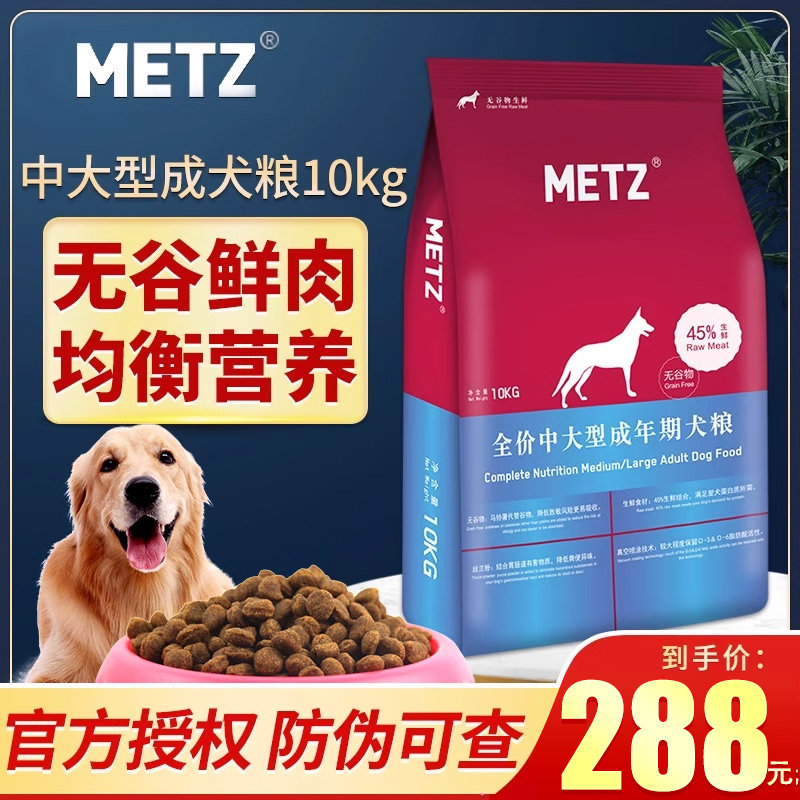 METZ玫斯狗粮10KG中大型犬成犬通用型无谷物鲜肉犬主粮金毛粮20斤