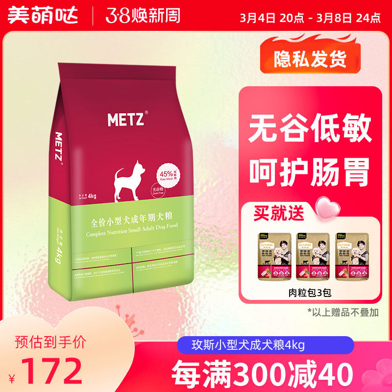 METZ/玫斯小型犬成犬粮4kg 泰迪博美通用型无谷物生鲜全价狗粮8斤