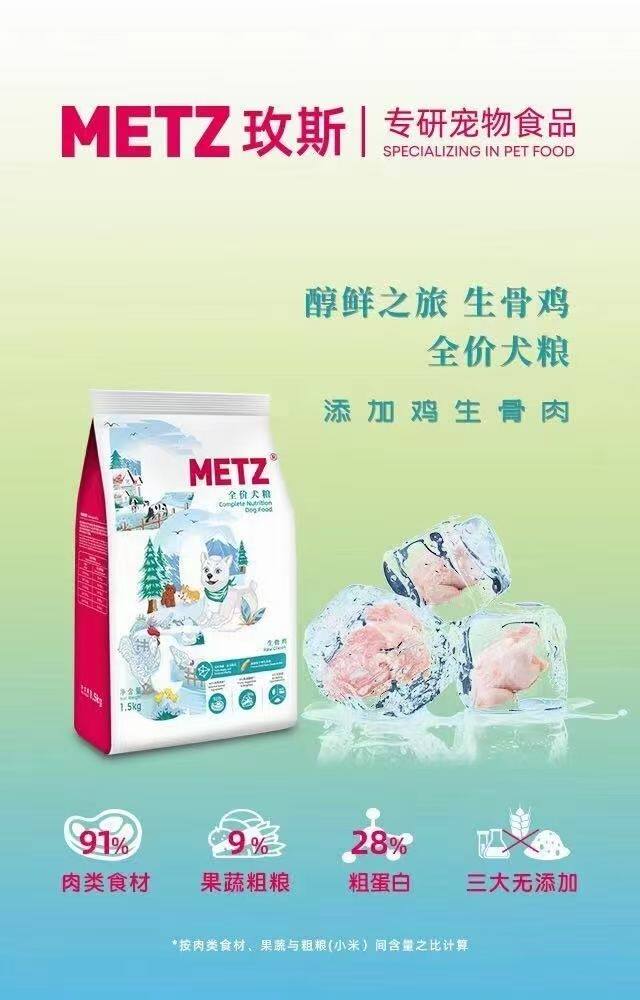 METZ玫斯淳鲜之旅生骨鸡狗粮冻干双拼小型犬泰迪柯基成幼犬1.5kg