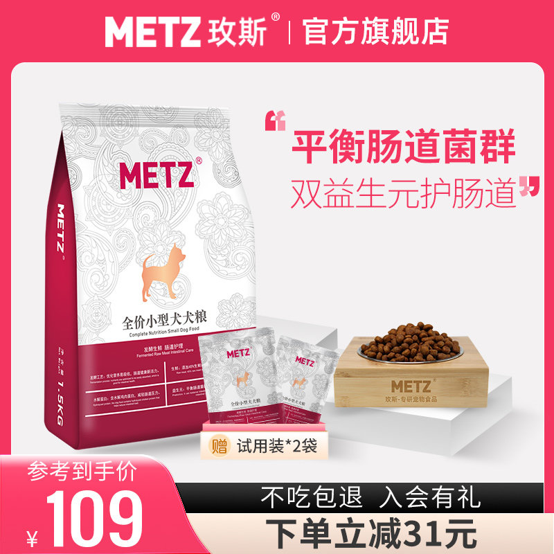 METZ/玫斯发酵鲜肉小型犬肠道护理狗粮 1.5kg 成幼犬通用狗粮3斤
