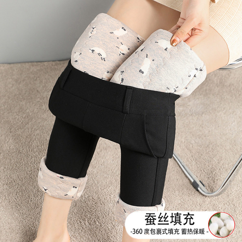 蚕丝棉裤女冬季外穿加厚大码腰显瘦打底裤新款小脚加绒保暖裤子