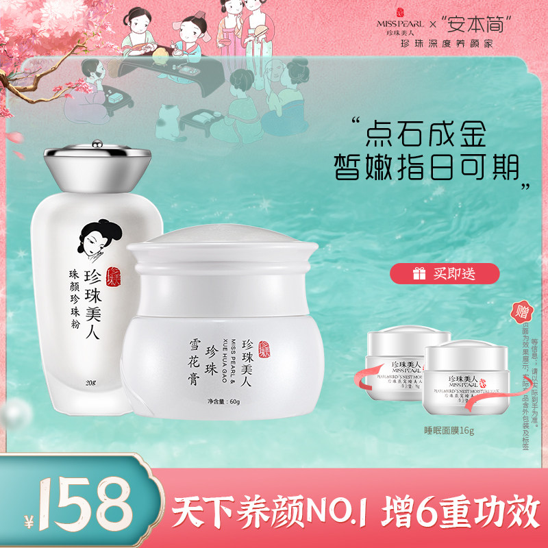 珍珠美人护肤套装珍珠粉+雪花膏面霜保湿锁水美白提亮嫩肤养颜组