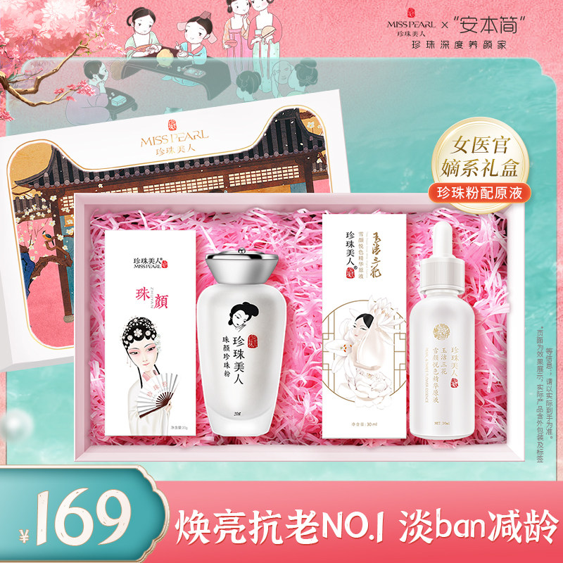 珍珠美人护肤套装精华原液+珍珠粉初老肌保湿补水控油祛痘美白