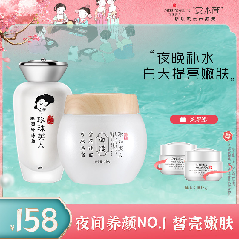 珍珠美人护肤套装珍珠粉+燕窝睡眠面膜嫩肤美白保湿祛黄提亮肤色