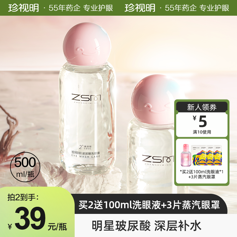 珍视明玻尿酸洗眼液清洗眼睛水清洁眼部护理液洗眼润500ML正品KW