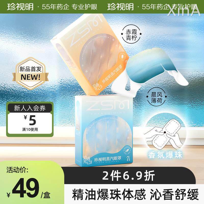 珍视明蒸汽眼罩发热敷遮光发热加热眼贴学生青少年助眠眼疲劳眼罩