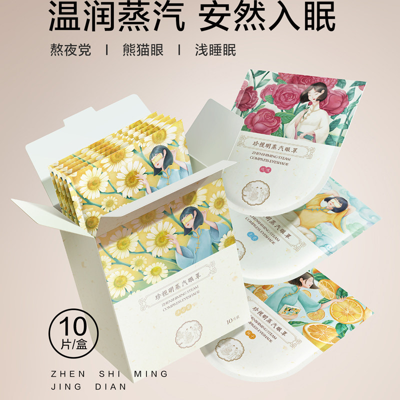 珍视明蒸汽眼罩护目热敷助眠洋甘菊一次性蒸汽眼罩发热缓解眼疲劳