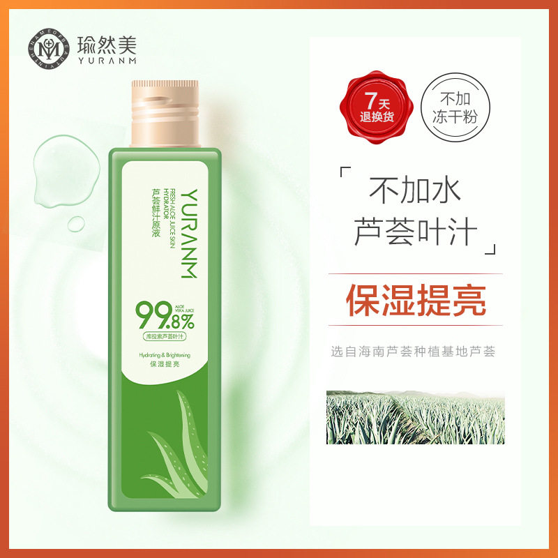 瑜然美芦荟补水原液保湿润透肌肤改善毛孔粗大男女化妆爽肤水180g