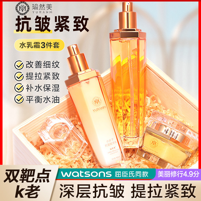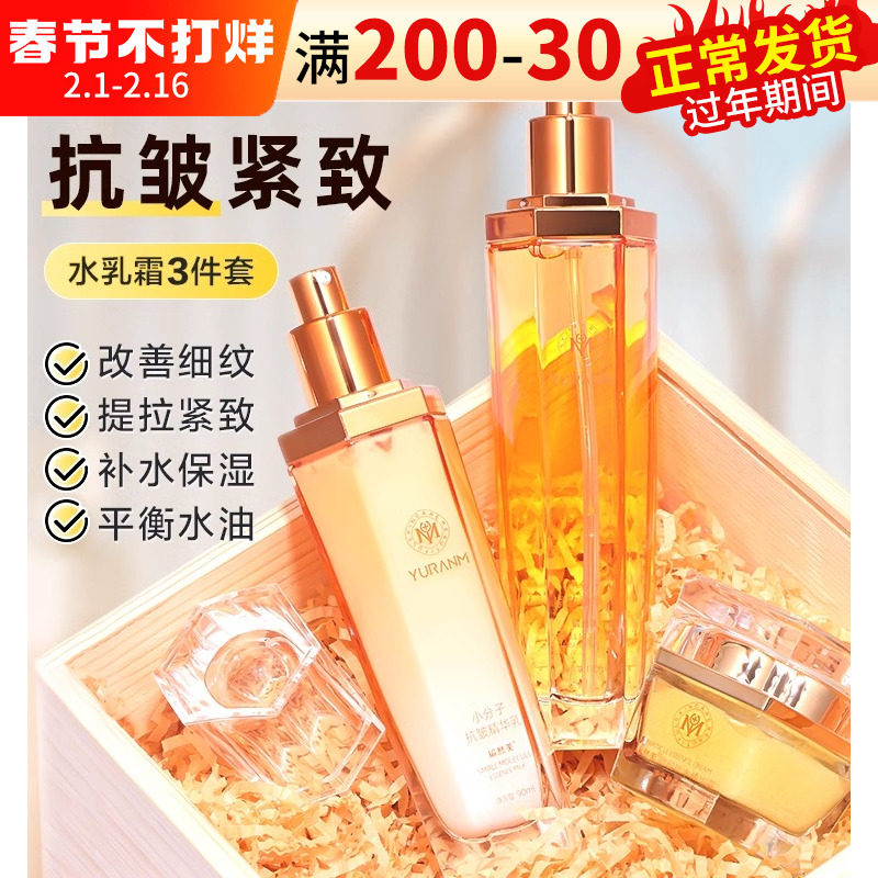 瑜然美小分子精华水乳面霜紧致抗皱嫩肤护肤套装化妆品旗舰店正品
