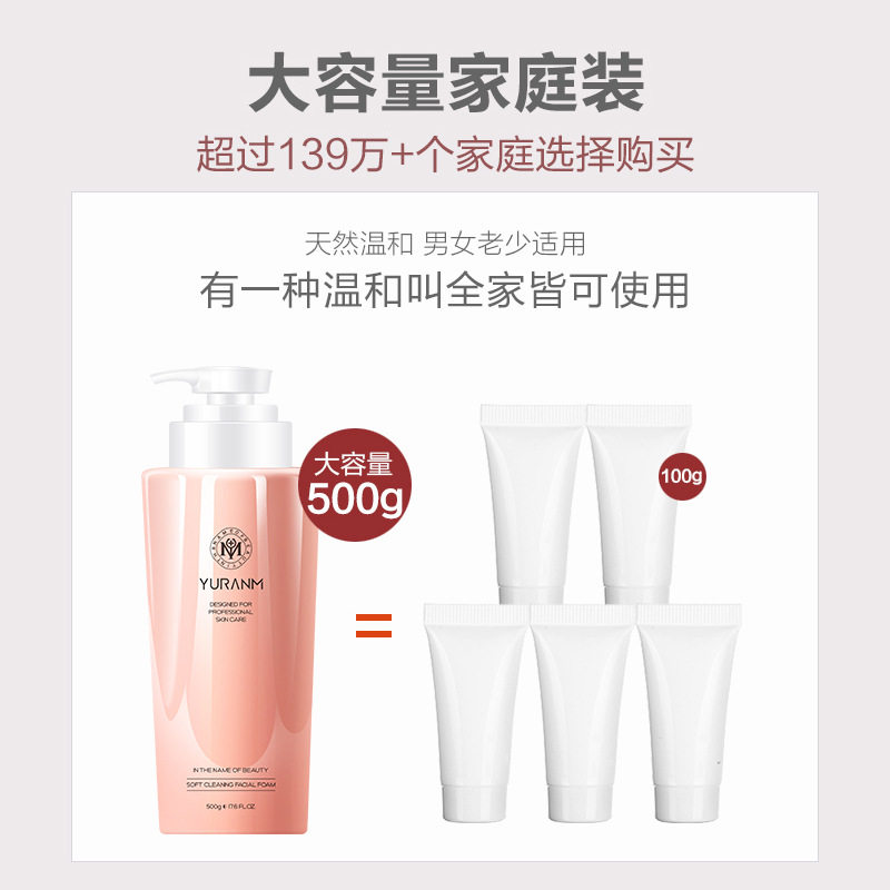 Yuranm/瑜然美洗面奶500g大瓶氨基酸洁面乳补水保湿润肤护肤品