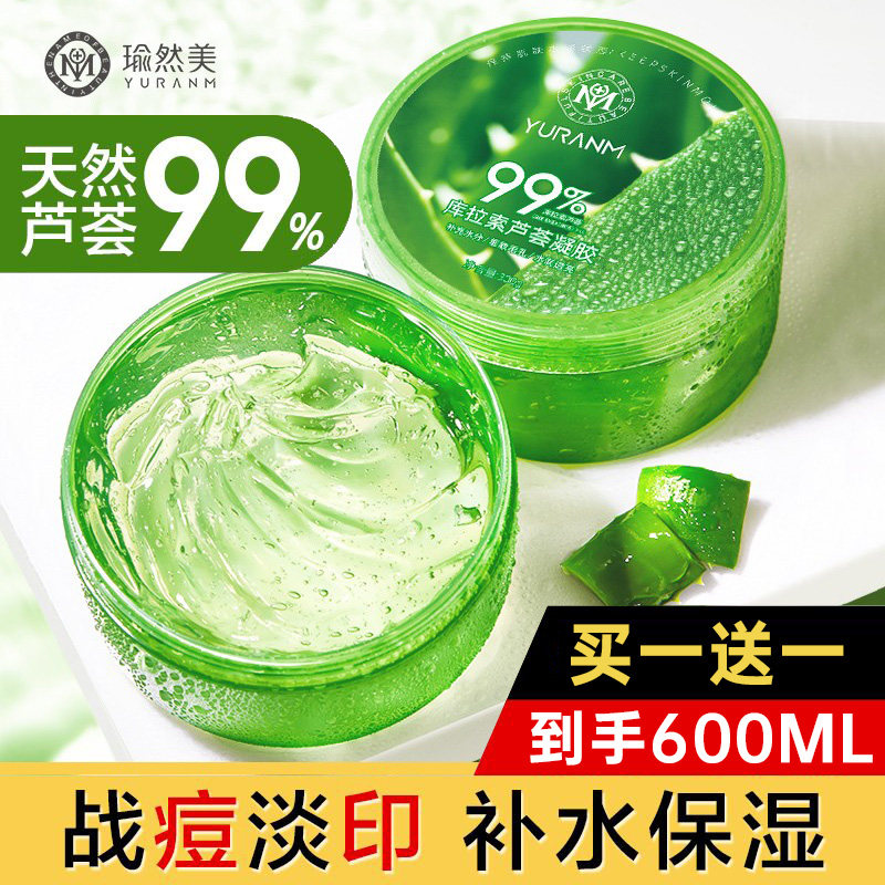 拍1发2瓶瑜然美芦荟胶正品淡印膏补水保湿痘印面霜睡眠面膜