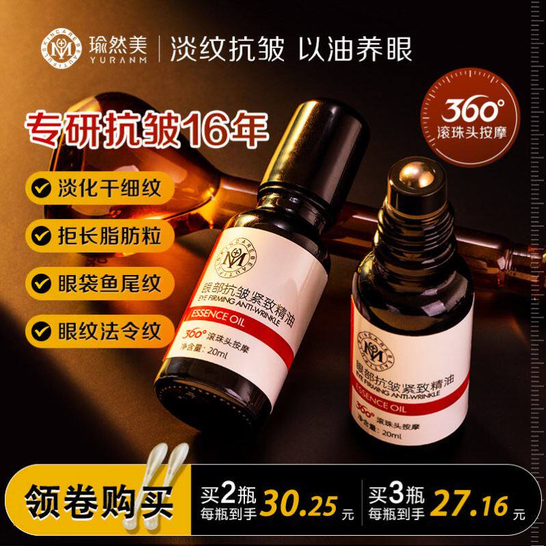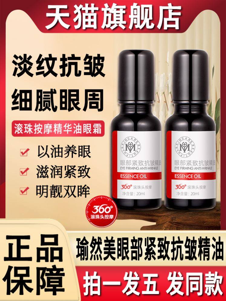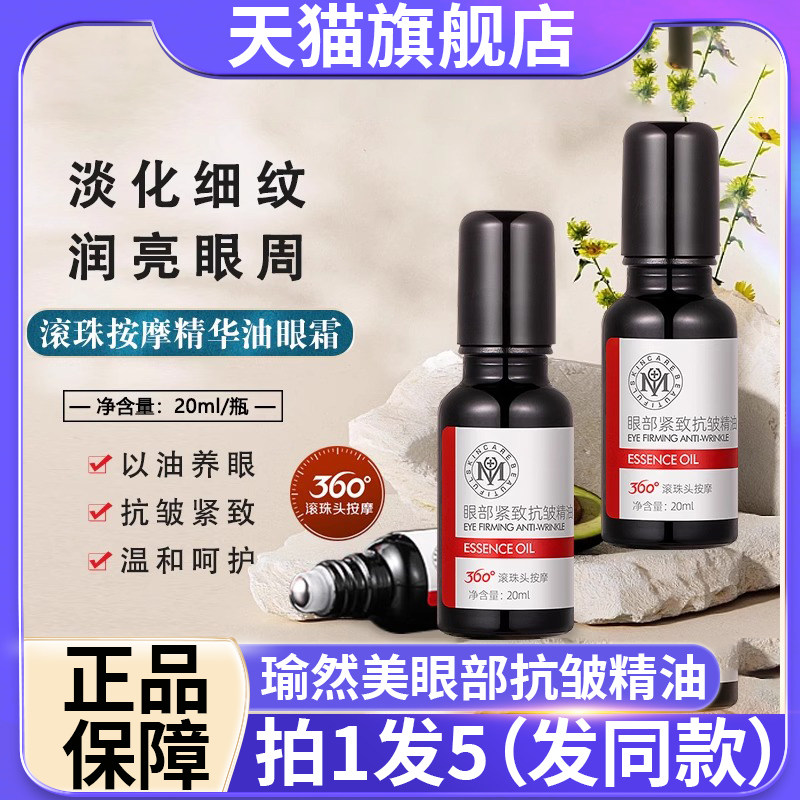 瑜然美眼部紧致抗皱精油紧致精华油滚珠眼周纹官方旗舰店去
