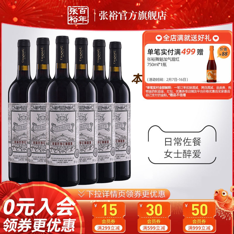 【张裕官方】甜红葡萄酒红酒整箱6瓶玫瑰红甜酒旗舰店正品红酒