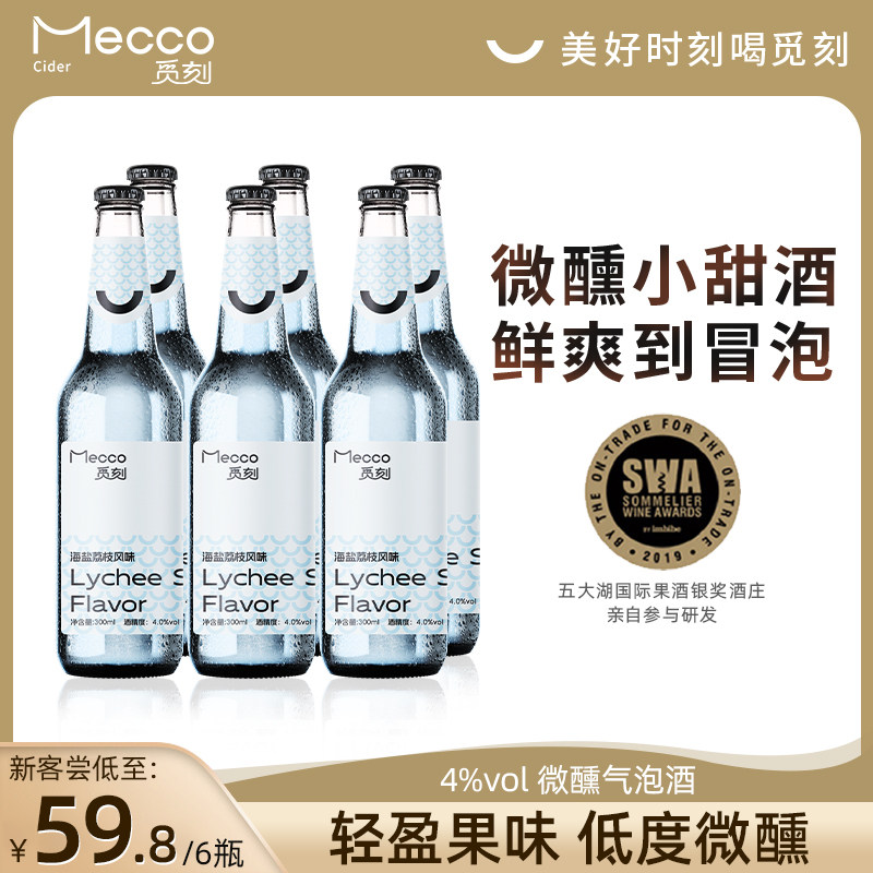 觅刻微醺果酒低度起泡酒甜酒学生女士少女4度微醺酒海盐荔枝300ml