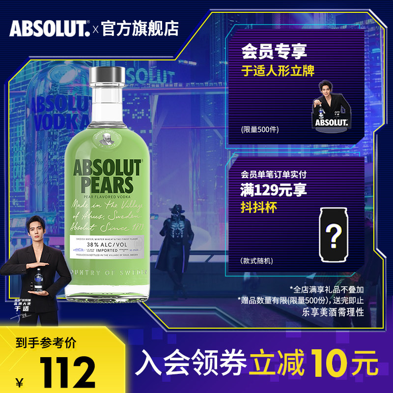 【于适同款】ABSOLUT绝对伏特加苹果梨味700ml瑞典进口洋酒烈酒